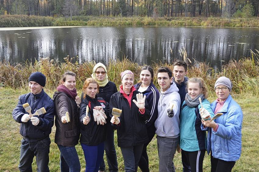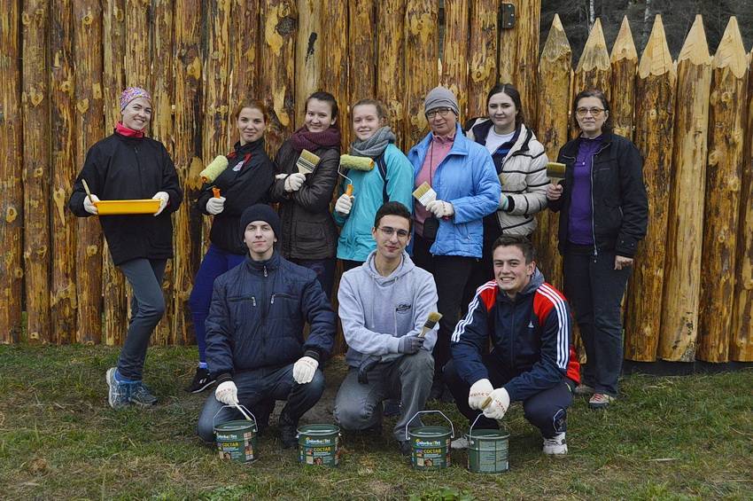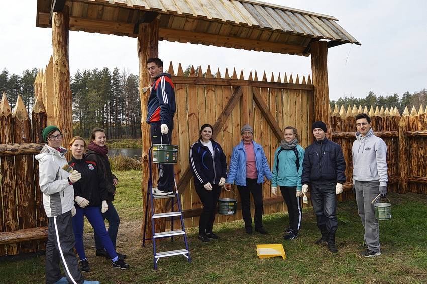 Завершились очередные волонтёрские выходные в заповеднике «Брянский лес». На этот раз к нам приехали десять человек из Брянска, Суземки и пришли пешком из ближайшего к усадьбе населённого пункта – станции Нерусса. Главной задачей волонтёров было покрыть будущий небольшой музей деревянных вещей специальными пропитками, чтобы в зиму сооружение ушло защищённым от влаги.